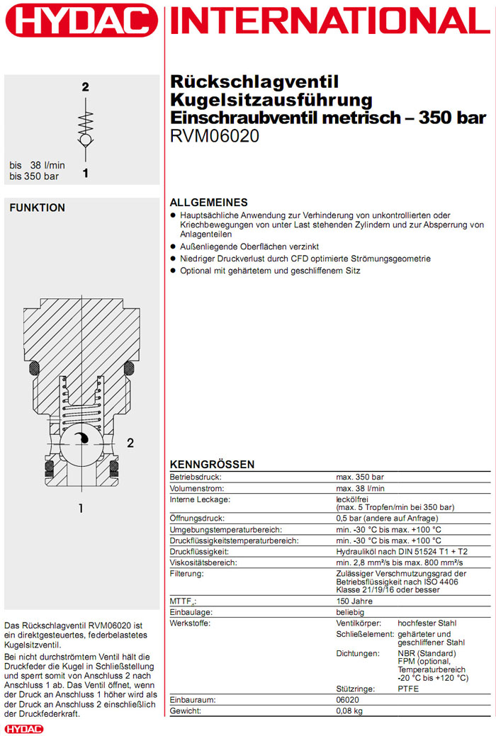 RVM06020-01-C-N-0.5,HYDAC止回阀