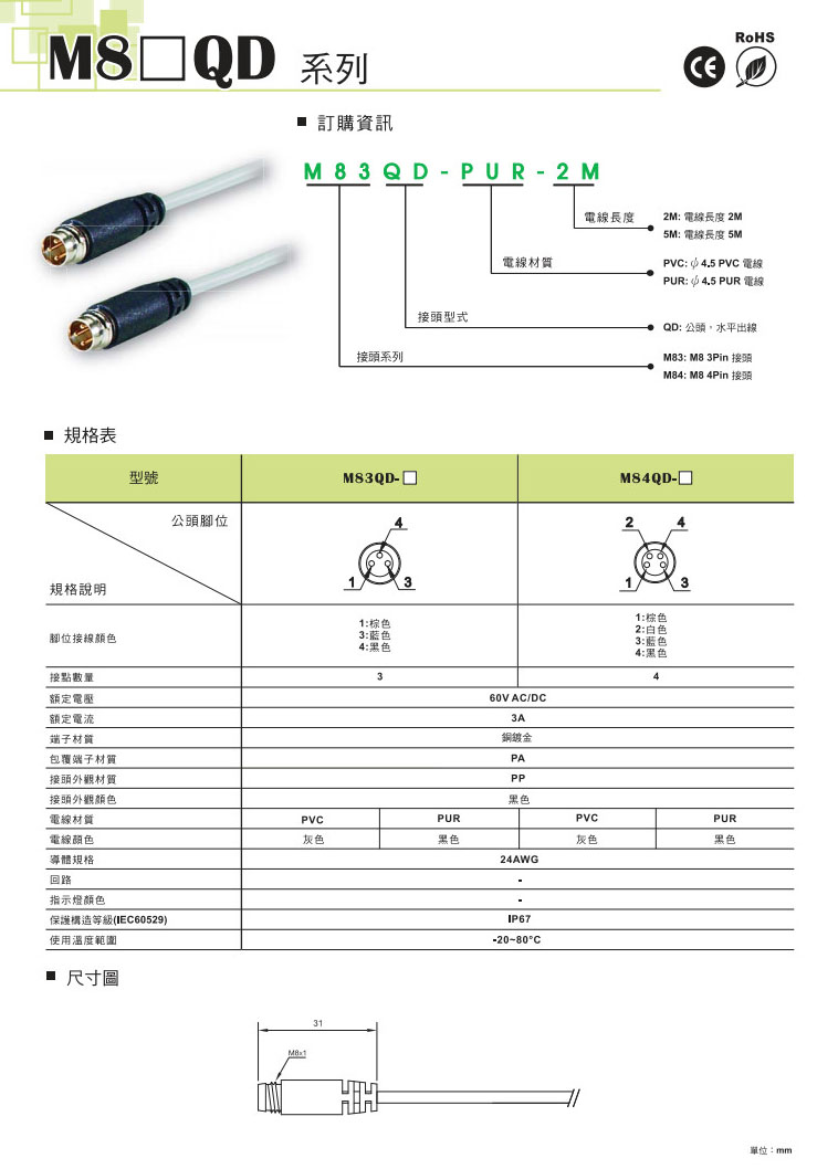 M83QD-PUR-2M,M83QD-PUR-5M,M83QD-PVC-2M,M83QD-PVC-5M,M84QD-PUR-2M,M84QD-PUR-5M,M84QD-PVC-2M,KIDA导线接头