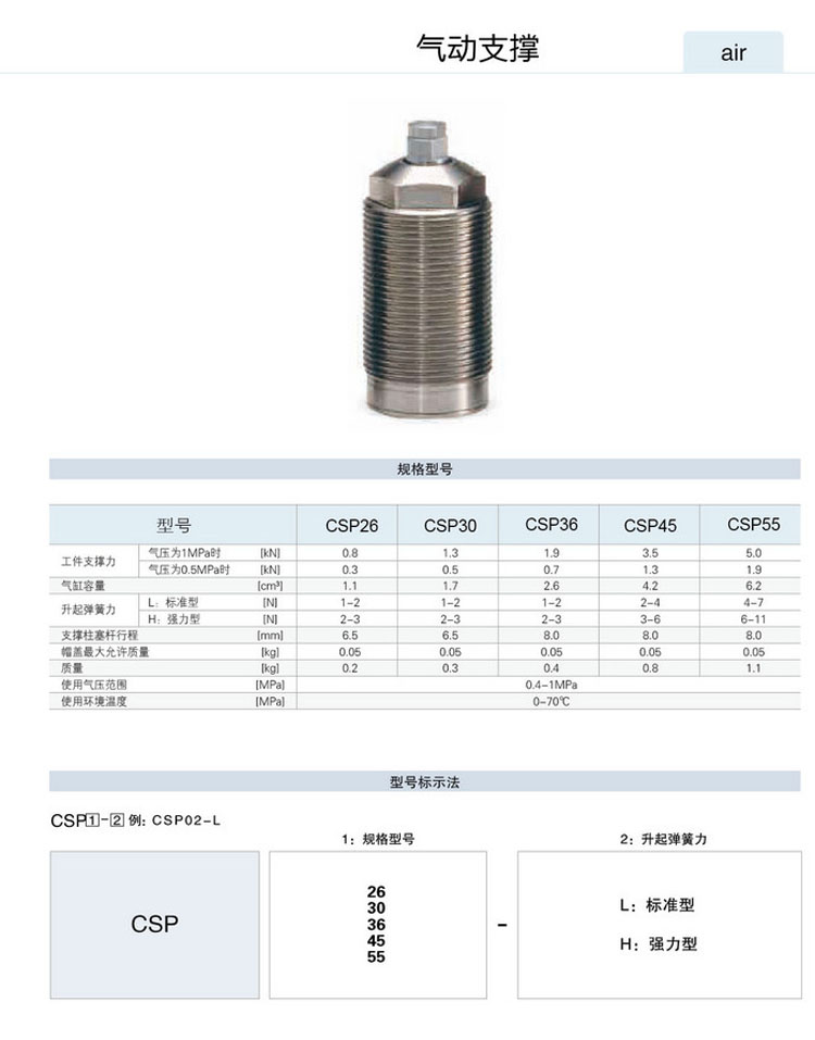 CSP26,CSP30,CSP36,CSP45,CSP55,气动支撑缸