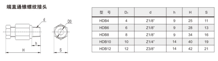 HDB4,HDB6,HDB8,HDB10,HDB12,直通锥螺纹接头