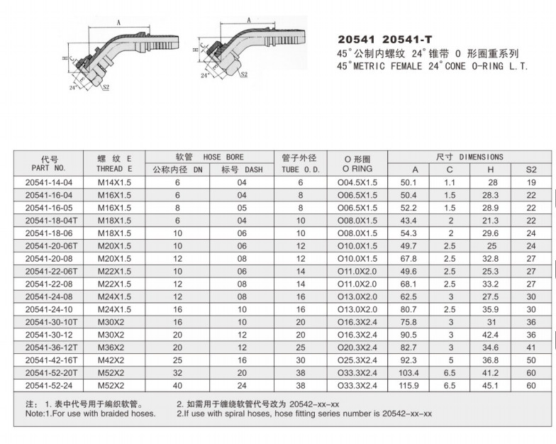 20541-14-04,20541-16-04,20541-16-05,20541-18-04T,20541-18-06,20541-20-06T,扣压式软管接头