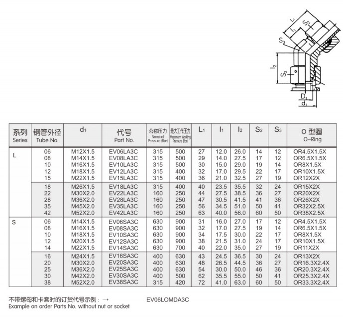 EV06LA3C,EV08LA3C,EV10LA3C,EV10SA3C,EV12SA3C,EV14SA3C,45度组合接头