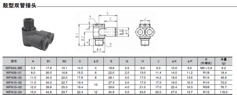 WPA04-M5,WPA06-01,WPA08-02,WPA10-02,WPA10-03,WPA12-04,鼓型双管接头