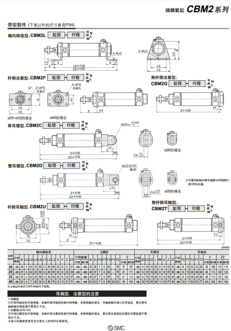 CDBM2B,CDBM2L,CDBM2F,CDBM2G,CDBM2C,CDBM2D,CDBM2U,CDBM2T,CDBM2E,CDBM2E20-100,SMC端锁气缸