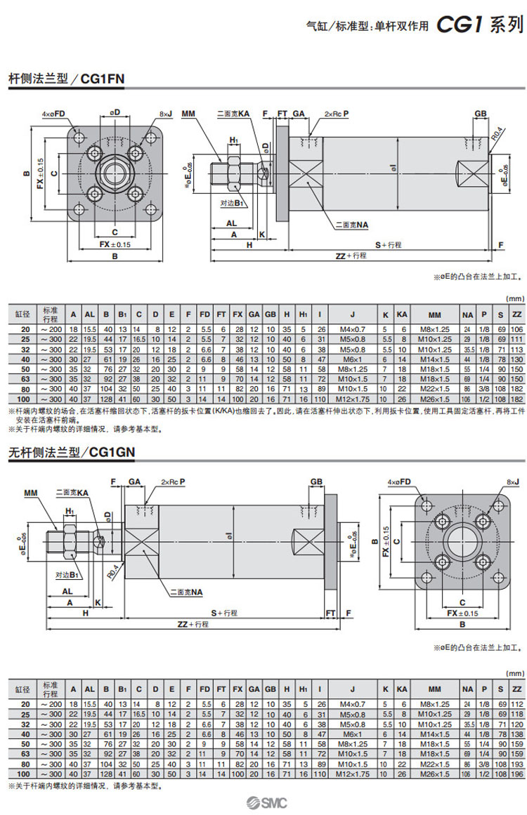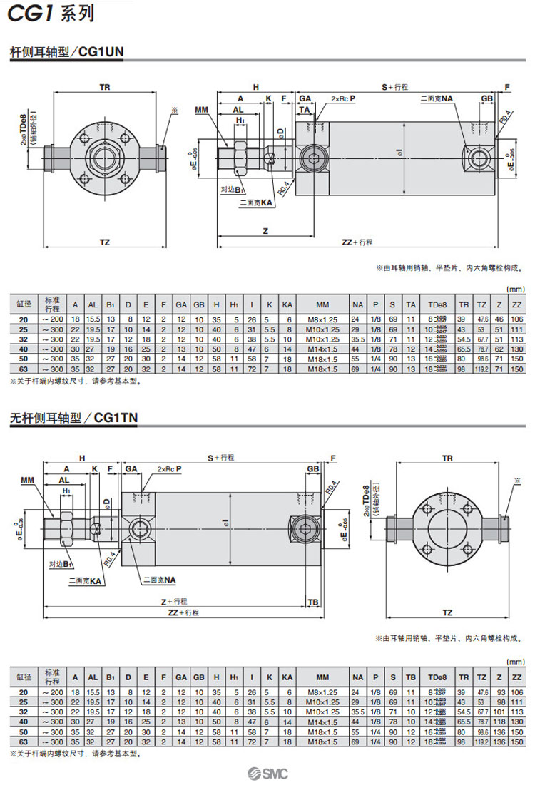 CG1BN,CG1ZN,CG1LN,CG1FN,CG1GN,CG1UN,CG1TN,CG1DN,CG1BN20-25Z,CG1LN20-25Z,SMC标准型气缸