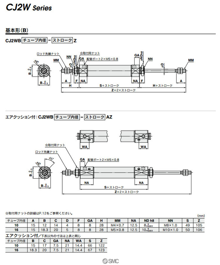 CJ2WB10,CJ2WL10,CJ2WF10,CJ2WB16,CJ2WL16,CJ2WF16,CDJ2WL10,CDJ2WF10,CDJ2WB16,SMC标准型气缸