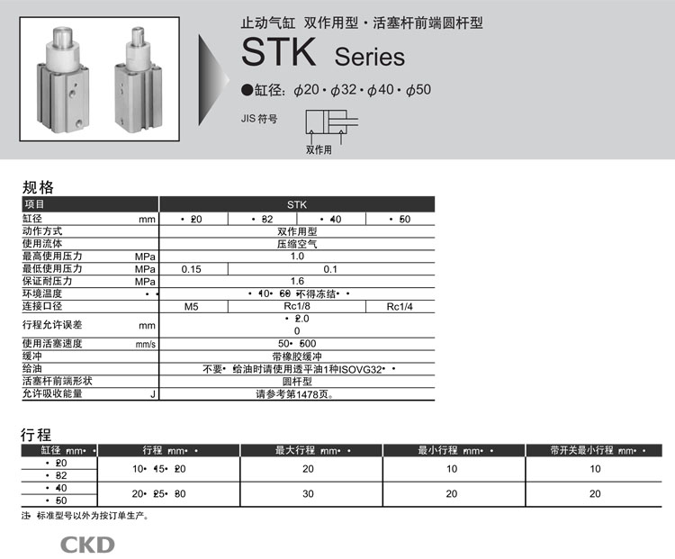 STK-20-10,STK-32-10,STK-40-20,STK-50-20,STK-20-15,STK-40-25,STK-50-30,CKD止动气缸