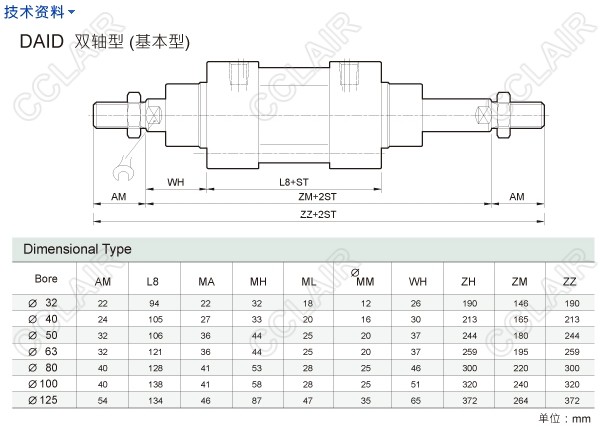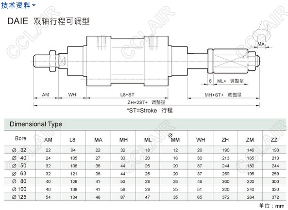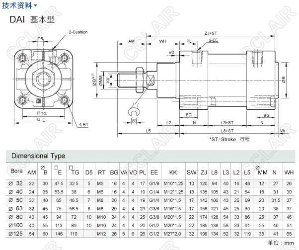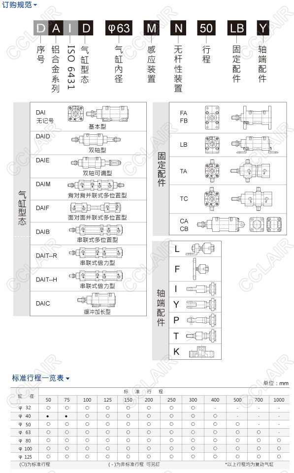 DAI-32M50,DAID-32M250,DAIE-40M50,DAIM-50M50,DAIF-63M50,DAIB-50M250,DAIT-80M250,DAIC-100M50,hinaka标準型气缸