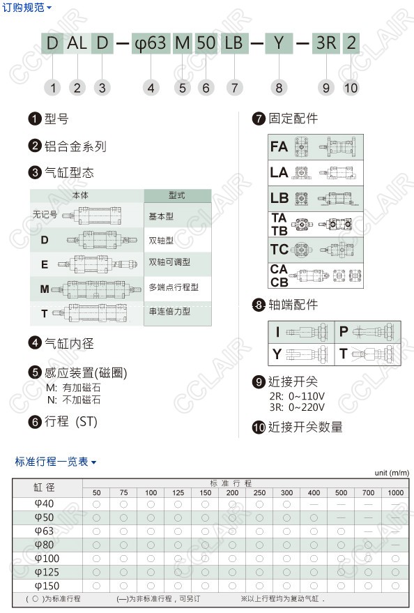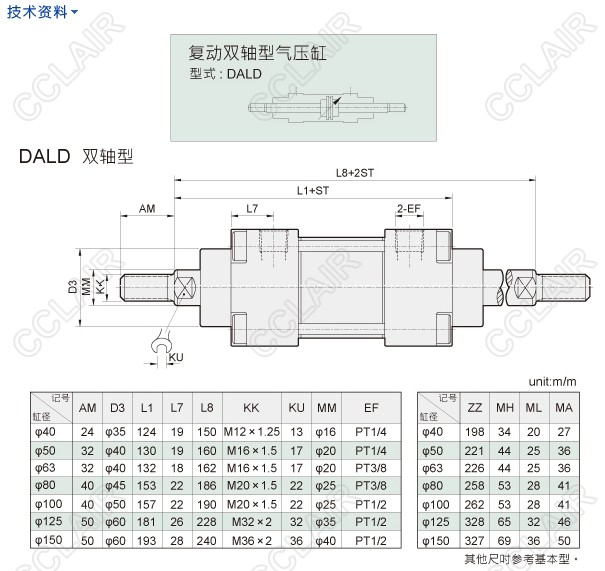 DAL-40N50,DAL-40N75,DAL-40N100,DAL-40N125,DAL-40N150,DAL-40N200气缸