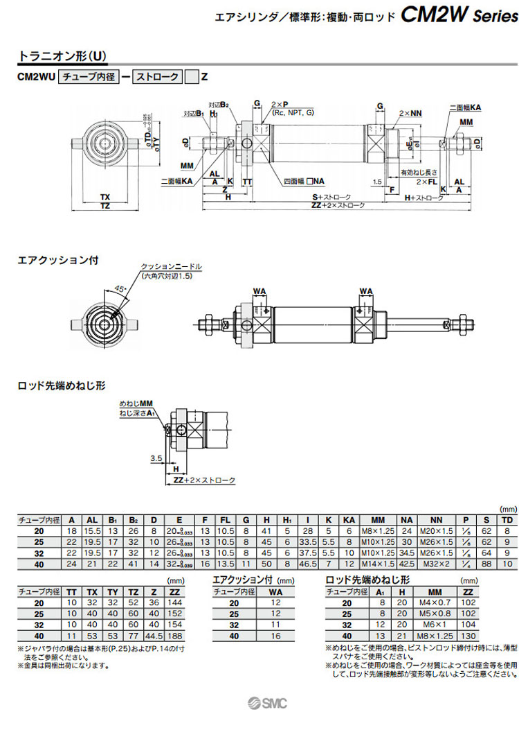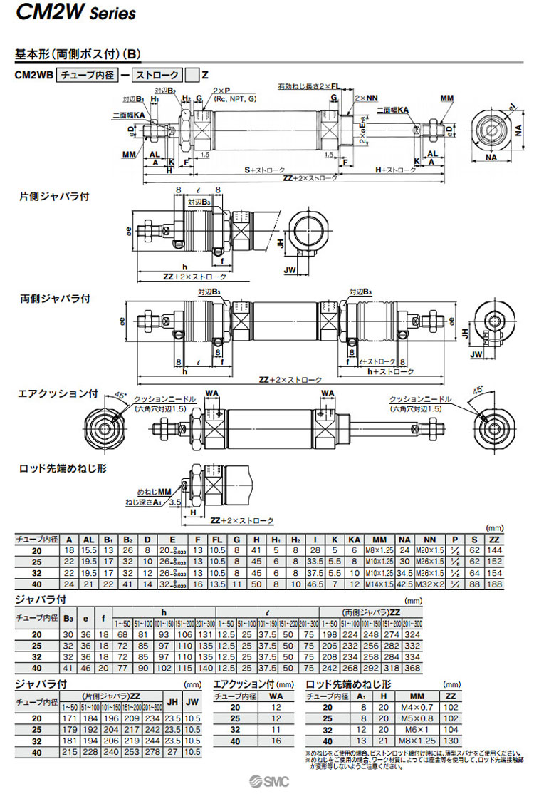 CDM2WF20-300,CDM2WF25-300,CDM2WF32-300,CDM2WF40-300,CDM2WU20-300,CDM2WU25-300,CDM2WU32-300,CDM2WU40-300,SMC标准型气缸