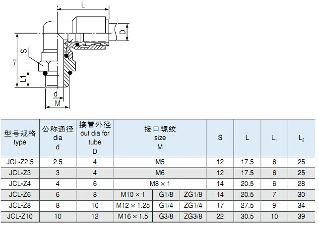 JCL-Z2.5,JCL-Z3,JCL-Z4,JCL-Z6,JCL-Z8,JCL-Z10,插入式直角终端管接头