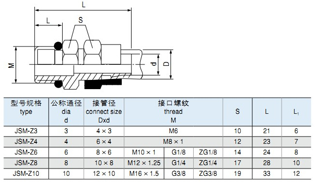 JSM-Z3,JSM-Z4,JSM-Z6,JSM-Z8,JSM-Z10,锁母式直通终端管接头