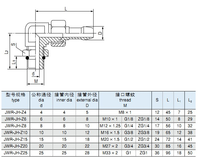JWR-JH-Z4,JWR-JH-Z6,JWR-JH-Z8,JWR-JH-Z10,JWR-JH-Z15,JWR-JH-Z20,JWR-JH-Z25,外插式直通活节管接头