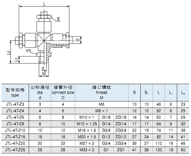 JTL-4T-Z3,JTL-4T-Z4,JTL-4T-Z6,JTL-4T-Z8,JTL-4T-Z10,JTL-4T-Z15,JTL-4T-Z20,JTL-4T-Z25,卡套式四通终端管接头