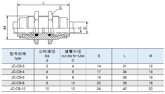 JC-CB-3,JC-CB-4,JC-CB-6,JC-CB-8,JC-CB-10,插入式直通穿板管接头