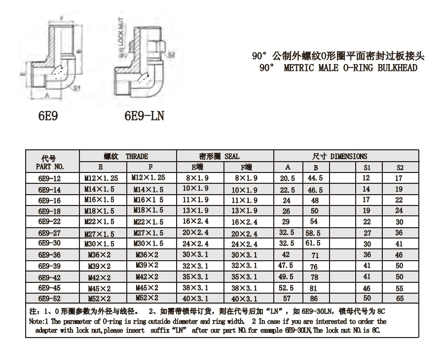 6E9-12,6E9-14,6E9-16,6E9-18,6E9-22,6E9-27,6E9-30,6E9-42,6E9-45,6E9-52,平面密封接头