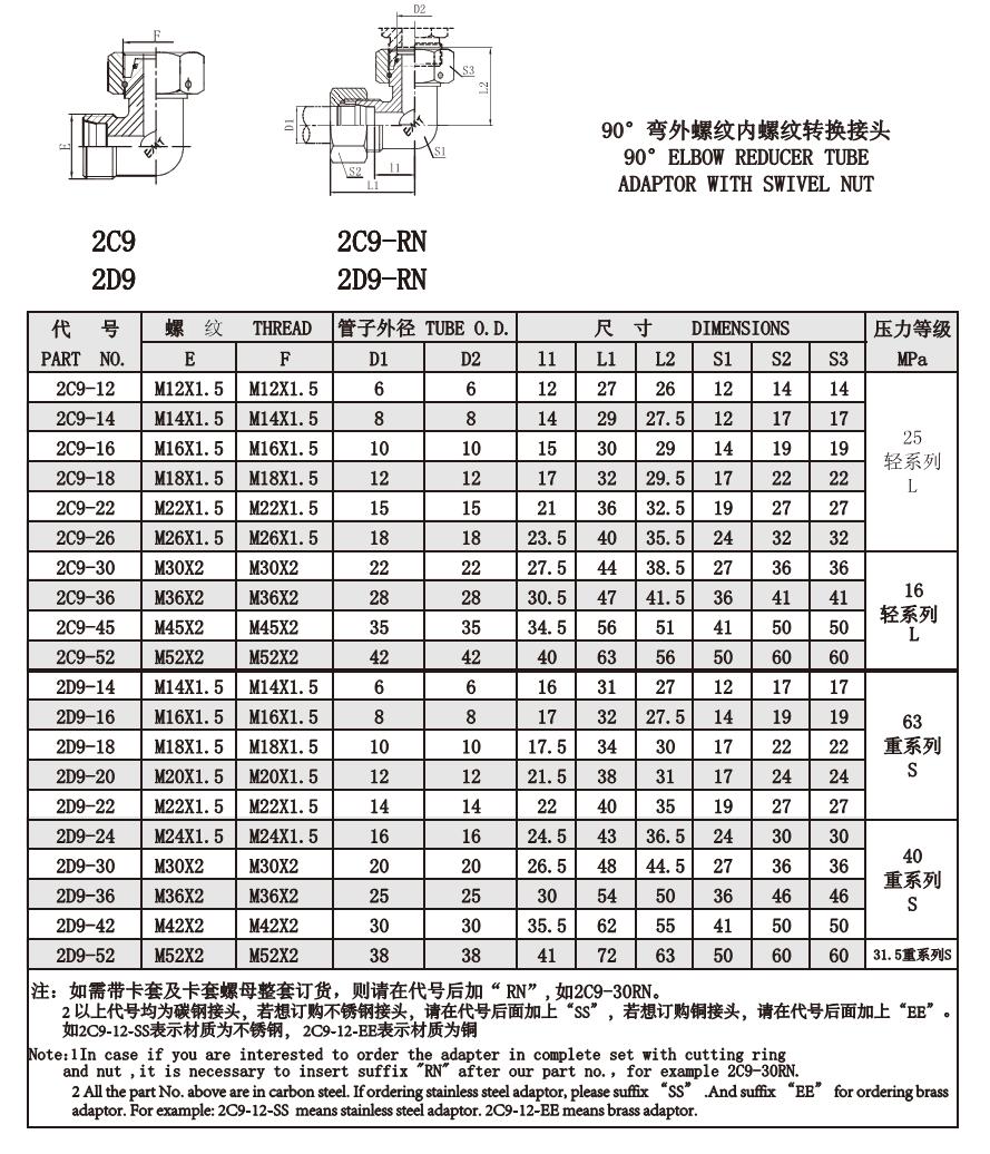 2C9-12,2C9-22,2C9-30,2C9-45,2C9-52,2D9-14,2D9-22,2D9-36,2D9-42,2D9-52,内螺纹转换接头