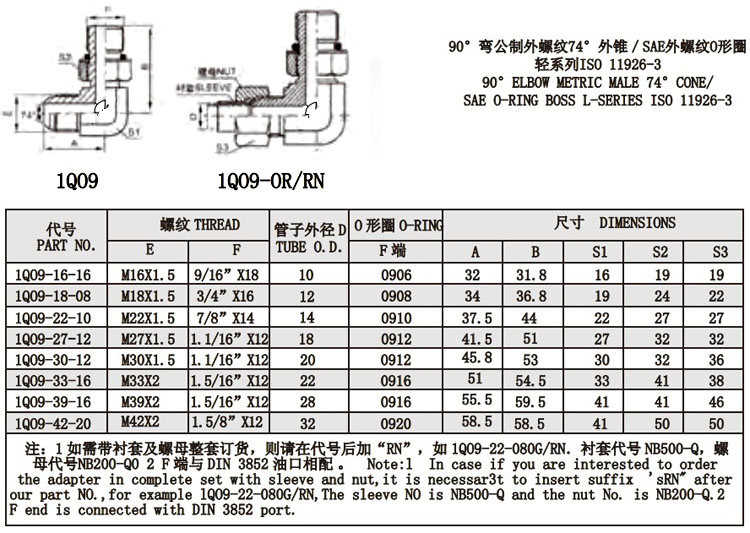 1Q09-16-16,1Q09-18-18,1Q09-22-10,1Q09-27-12,1Q09-30-12,1Q09-33-16,1Q09-42-20,1Q09-39-16,锥面密封接头