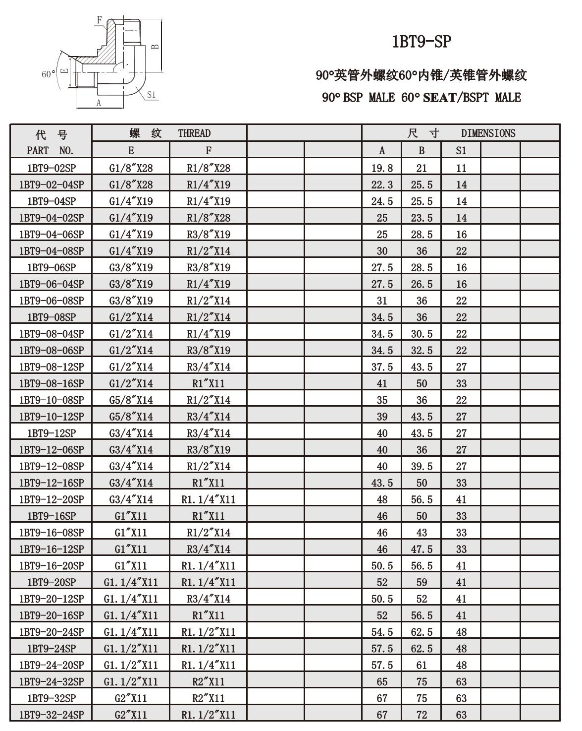 1BT9-02SP,1BT9-04SP,1BT9-06SP,1BT9-08SP,1BT9-12SP,1BT9-16SP,1BT9-20SP,1BT9-24SP,1BT9-32SP,锥面密封接头