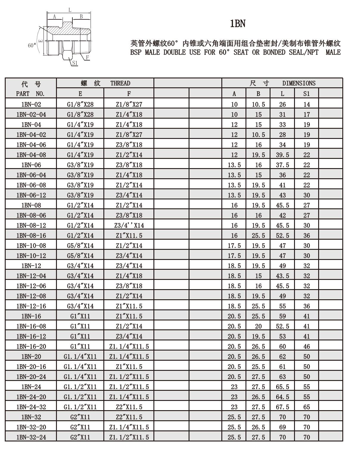 1BN-02,1BN-04,1BN-06,1BN-08,1BN-12,1BN-16,1BN-20,1BN-24,1BN-32,锥面密封接头