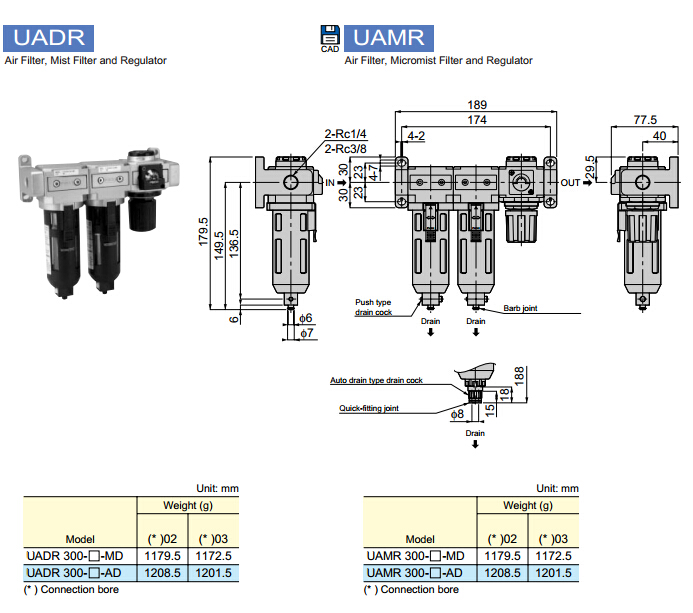 UADR300-02-MD,UADR300-03-AD,UAMR300-02-MD,UAMR300-03-AD,PISCO三联件