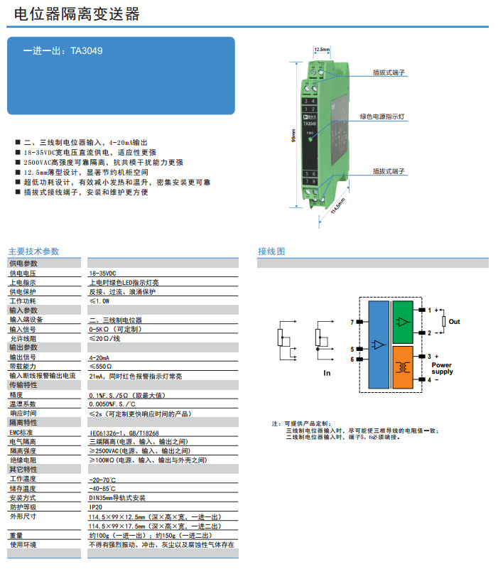 TA3049,电位器隔离变送器