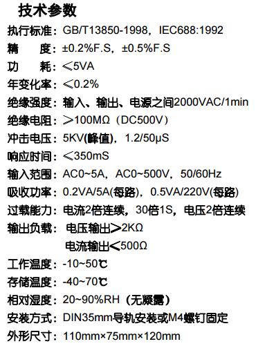 描述: 此型号为三相三线功率因数变送器,5Aac 电流互感器(CT)变比电流信号,100Vac电压互感器(PT)变比电压信号输入,输出4~12~20mAdc,对应功率因数值-0.5C~1~0.5L,工作电源AC220V。