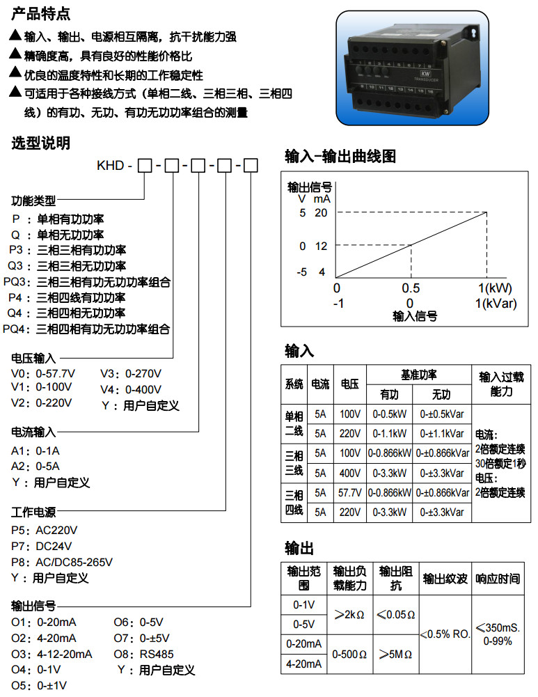 KHD-P,KHD-Q,KHD-P3,KHD-Q3,KHD-PQ3,KHD-P4,KHD-Q4,KHD-PQ4,KHD-P3-V1A2-P5-O2,KH型功率变送器