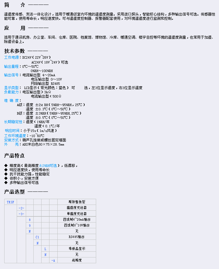TKSF-2-8,TKSF-3-9,TKSF-2-8-C1-N-A,TKSF-3-8-C1-L-A,TKSF,壁挂式温湿度变送器