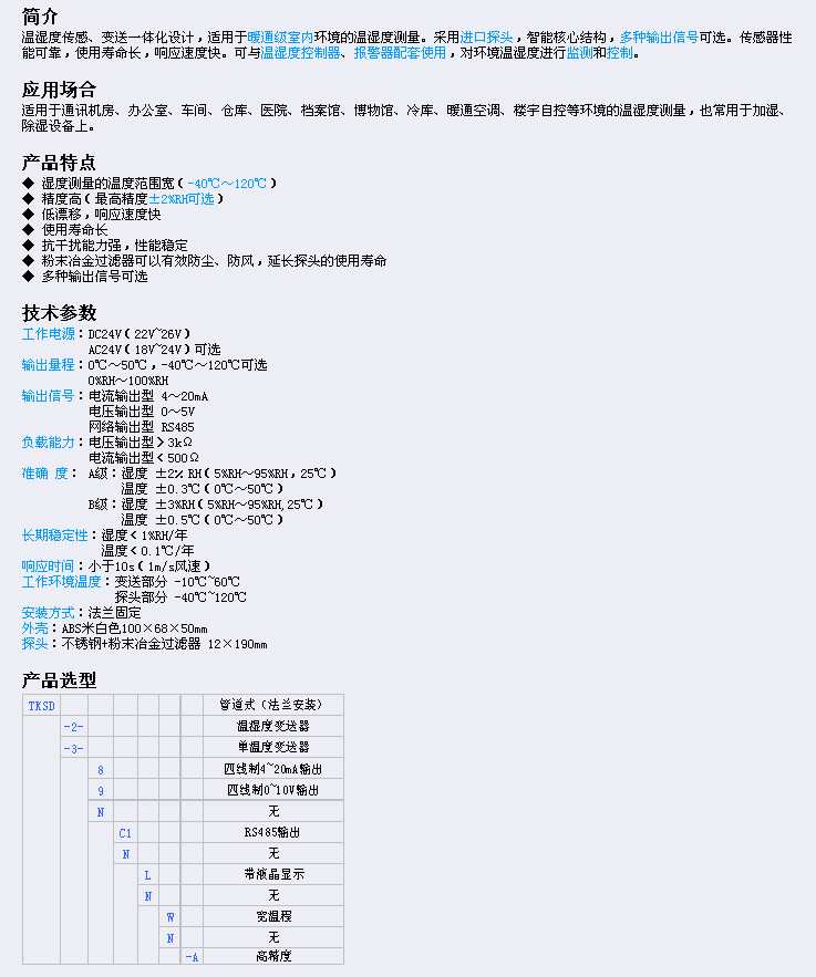 TKSD-2-8,TKSD-2-9,TKSD-2-N,TKSD-3-8,TKSD-3-9,TKSD-3-N,管道式温湿度变送器