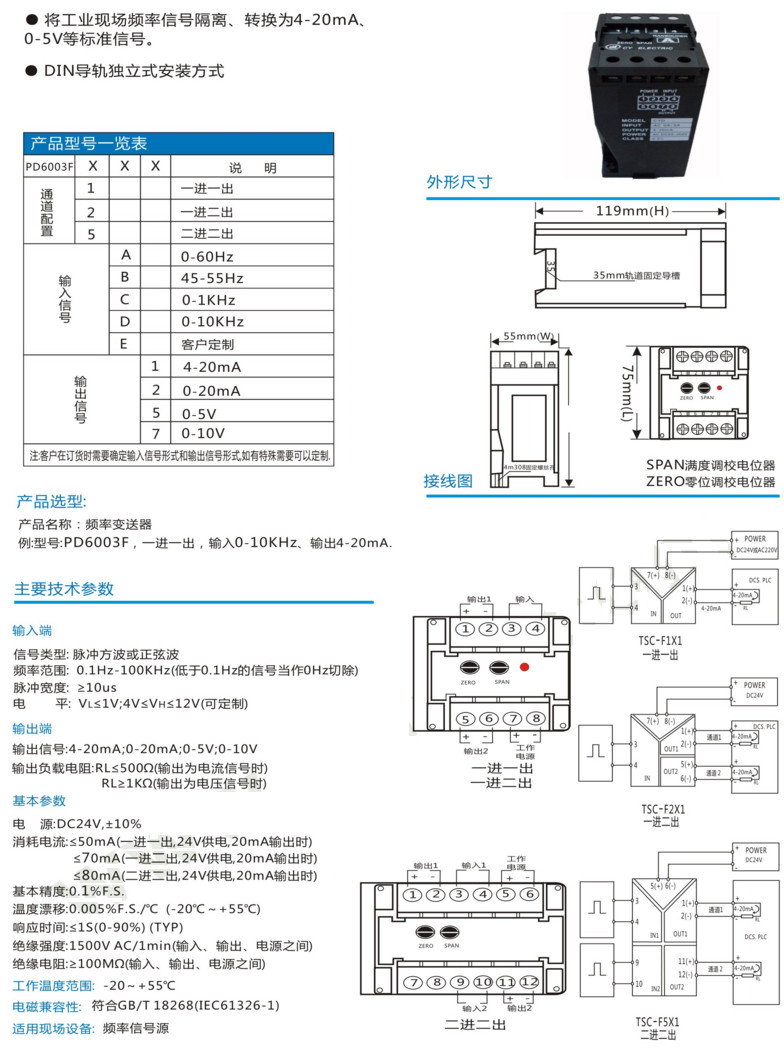 PD6003F1A1,PD6003F1B2,PD6003F2C1,PD6003F2C2,PD6003F5B5,PD6003F5E7,PD6003F,频率变送器