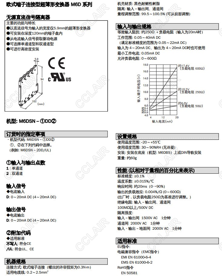 M6DSN-1DD,M6DSN-2DD,M6DSN-1DD/UL,M6DSN-2DD/UL,M6DSN,无源直流信号隔离器