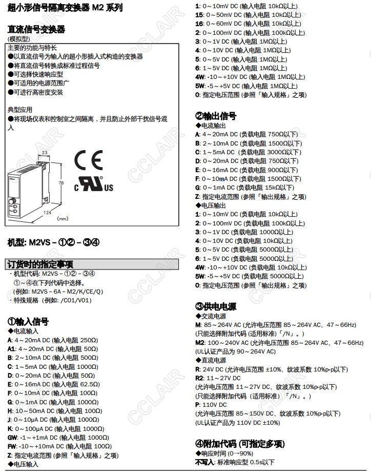 M2VS-BA,M2VS-D3,M2VS-6A-M2,M2VS-6A-MK,M2VS-6A-MCE,M2VS-6A-MQ,M2,信号隔离变换器