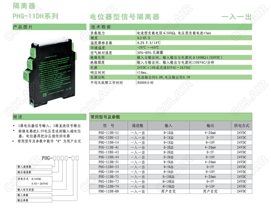 PHG-11DH-54,PHG-11DH-71,PHG-11DH-73,PHG-11DH-74,PHG-11DH-88电位器型信号隔离器