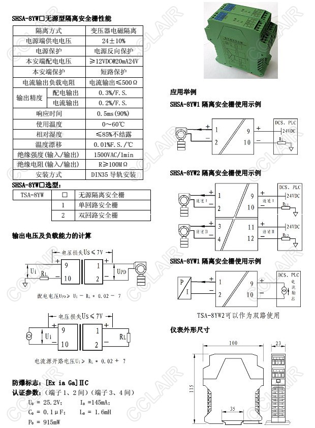 SHSA-8YW1,SHSA-8YW2,SHSA-8YW,无源型隔离安全栅