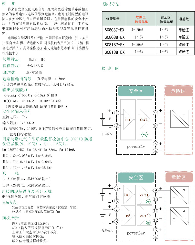 SC8087-EX,SC8088-EX,SC8187-EX,SC8188-EX,SC,电压输入操作端隔离安全栅