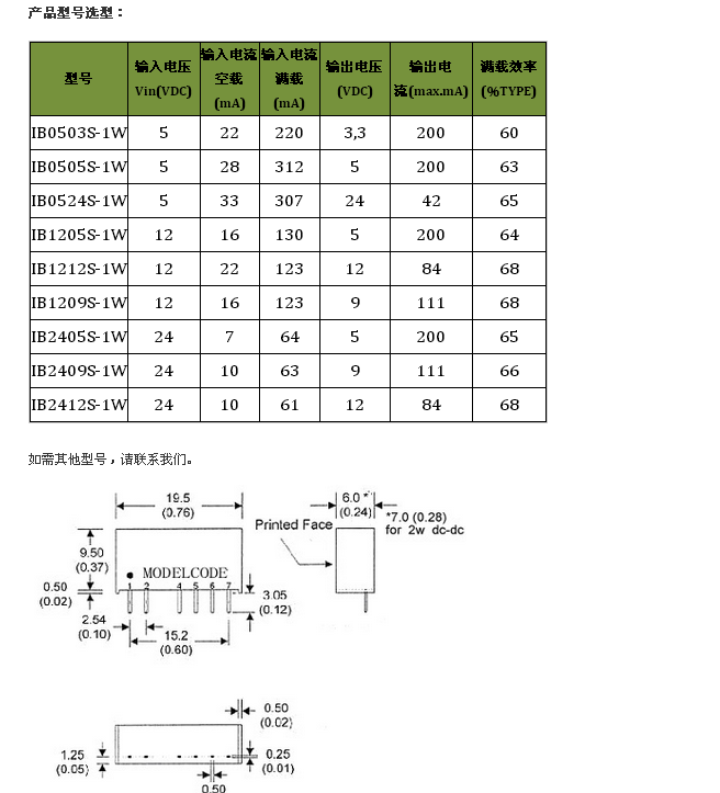 IB0503S-1W,IB0505S-1W,IB0524S-1W,IB1205S-1W,IB1212S-1W,电源模块