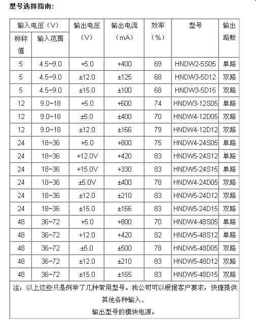 ,HNDW5-48D12,HNDW5-48D15,宽范围输入DC-DC电源模块