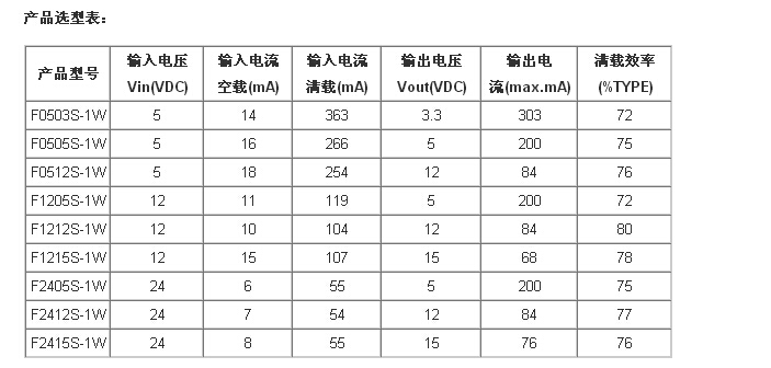 F2405S-1W,F2412S-1W,F2415S-1W,定电压输入3KV隔离单输出,电源模块.