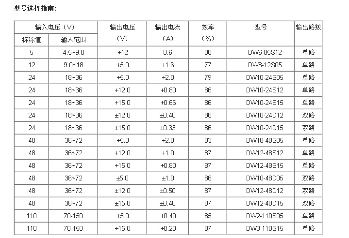 标称输出电压(V): 5/9/12/15/24/±5/±9/±12/±15/±24