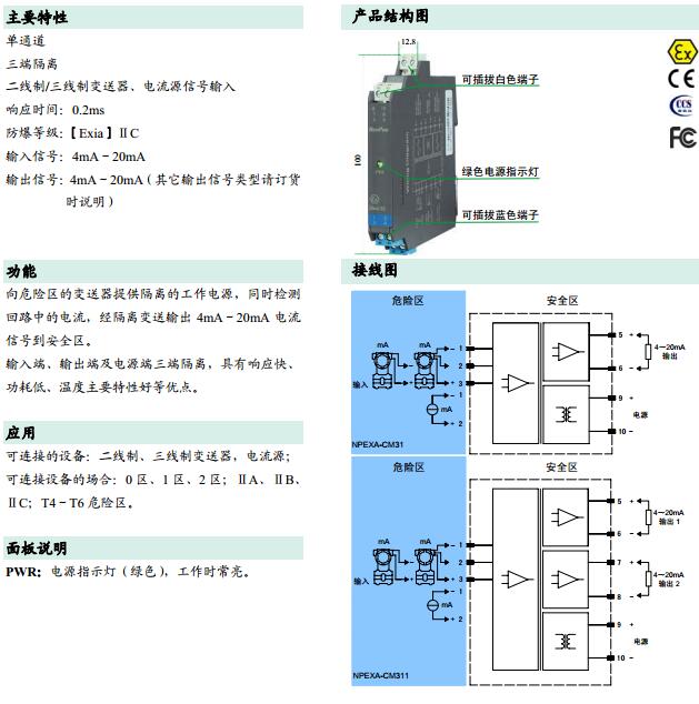 NPEXA-CM31,NPEXA-CM311,检测端隔离式安全栅