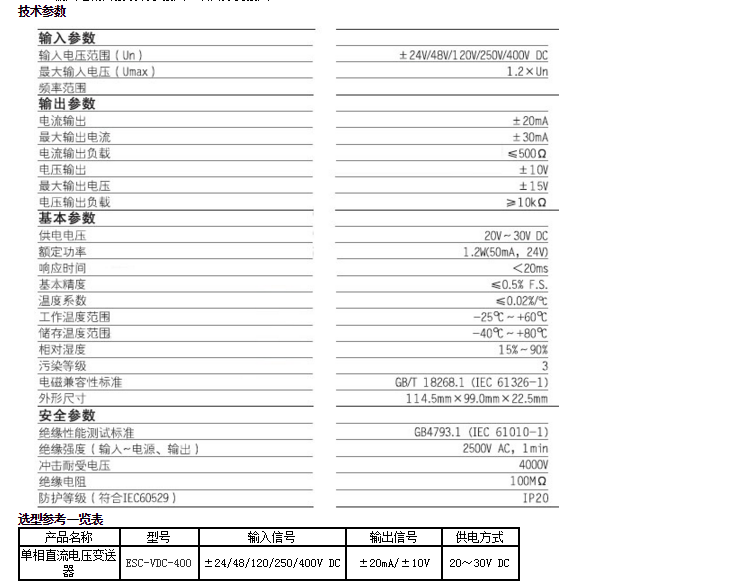 • 型号: ESC-VDC-400,单相直流电压变送器
