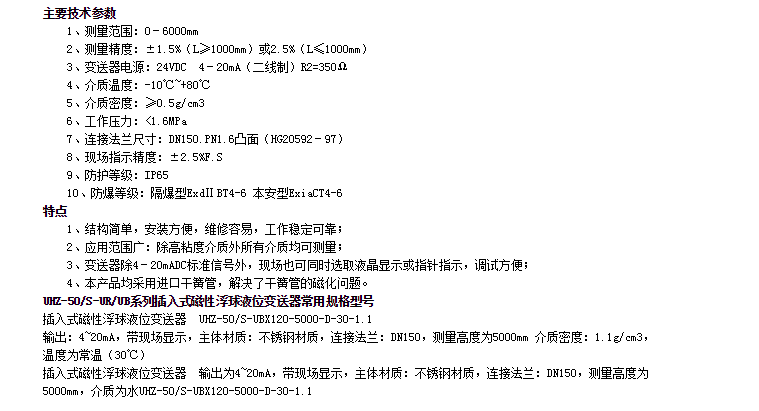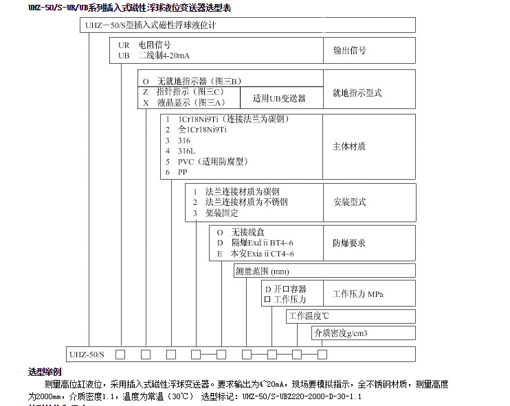 UHZ-50/S-UR,UHZ-50/S-UB,UHZ-50/S-UBX120-5000-D-30-1.1,插入式磁性浮球液位变送器