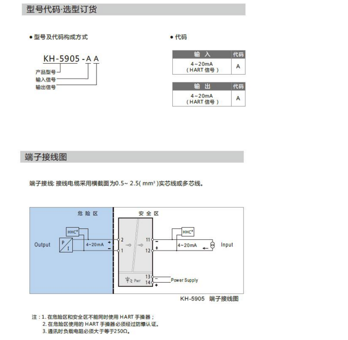 概述 . 主要技术规格 直流信号输出隔离安全栅接受来自处于安全区的 DCS/PLC 系统或其它操作器的直流电流4~20mA信号, 经过隔离传送, 输出直流电流4~20mA,驱动处于危险现场的电气转换器、阀门定位器、显示设备等本安仪表。 ● 供电电源 供电电压范围:15~30VDC 额定供电电压:24VDC 电流消耗(24VDC供电时):<30mA(1入1出) <65mA(2入2出) ● 从安全区输入 输入信号: 4~20mA 输入阻抗: 50Ω 输入压降: 20mA时,<4V ● 向危险区输出 输出电流信号:4~20mA 电流输出负载: ≤ 750Ω(出厂默认,可指定负载) ● 综合通用参数 标准精度:±0.1% 温度漂移:±0.015% / ℃ 响应时间:< 10ms 隔离能力:输入-输出-电源之间 2.5KV,1min ,50Hz 绝缘电阻:输入-输出-电源之间 ≥100MΩ / 500VDC 机壳材质阻燃:ABS 外形尺寸:16×116×110(mm) 工作环境温度: -20~+60℃) 适用于连接的现场设备及所处危险区域: 阀门定位器,电气 转换器等本安设备。0区、1区、2区;IIA、IIB、IIC 危险区。 ● 安全防爆认证参数 防爆等级标志: [Exia Ga]IIC 安全认证参数:Um = 250VAC/DC Uo =28VDC Io = 93mA Po = 0.65W Lo = 2.4 mH Co = 0.05μF