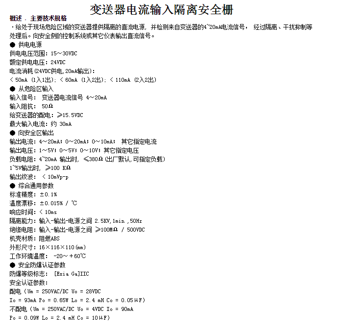 KH-5041-PA,KH-5041-PB,KH-5041-PC,变送器电流输入隔离安全栅