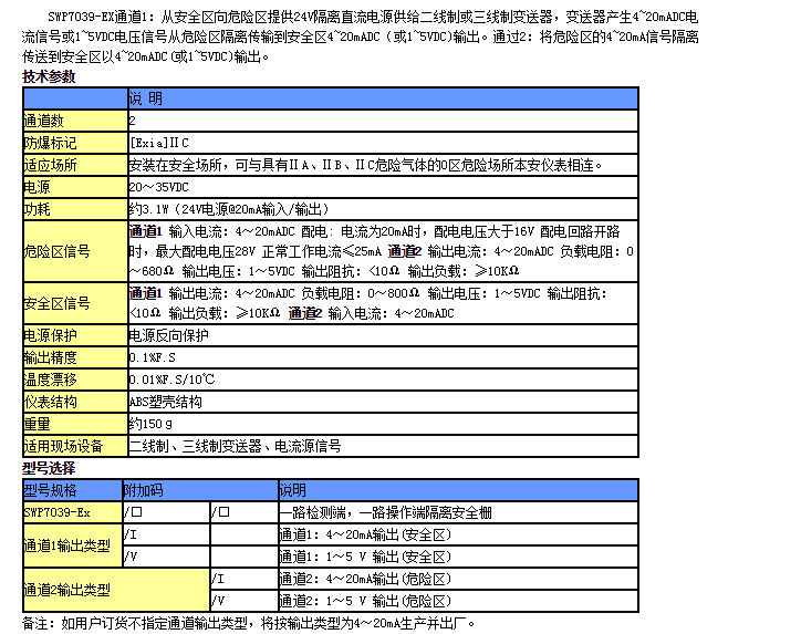 SWP7039-EX,检测端/操作端隔离安全栅