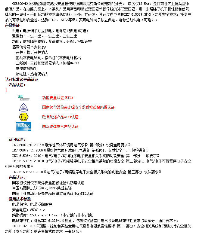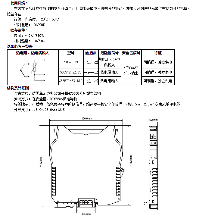 GS8572-EX,GS8572-EX.TC,GS8572-EX.RTD,隔离式安全栅