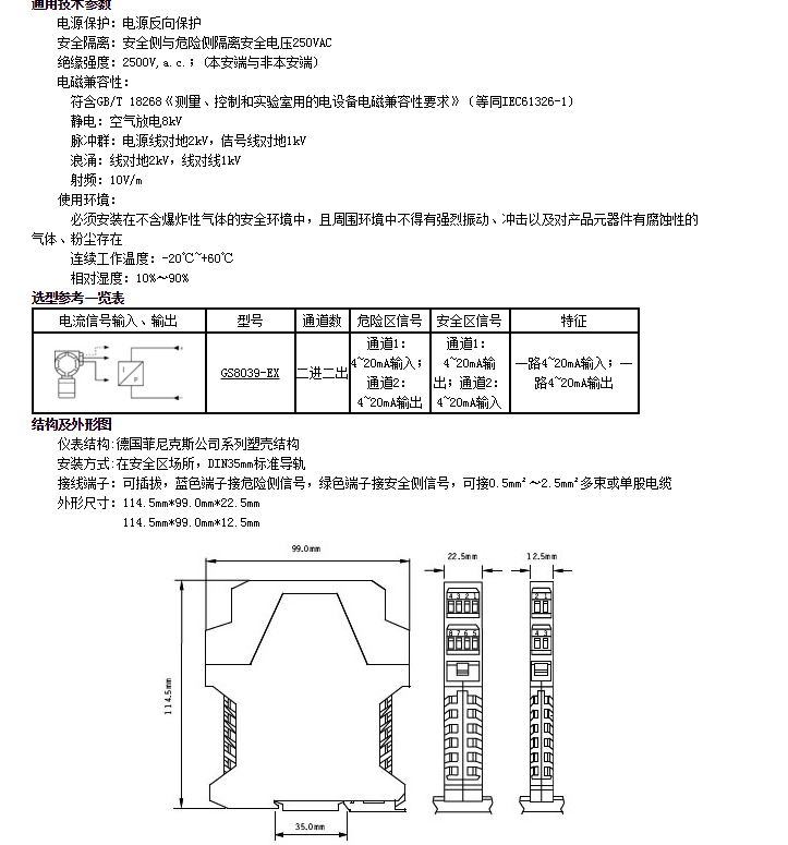 GS8039-EX,电流信号输入、输出隔离式安全栅
