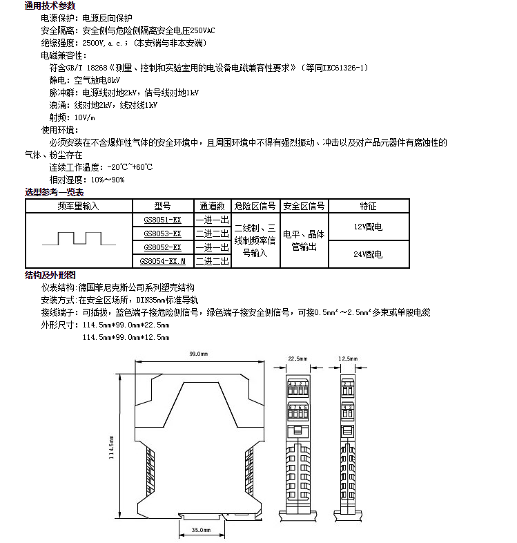 GS8051-EX,GS8053-EX,GS8052-EX,GS8054-EX.M,频率量输入隔离式安全栅