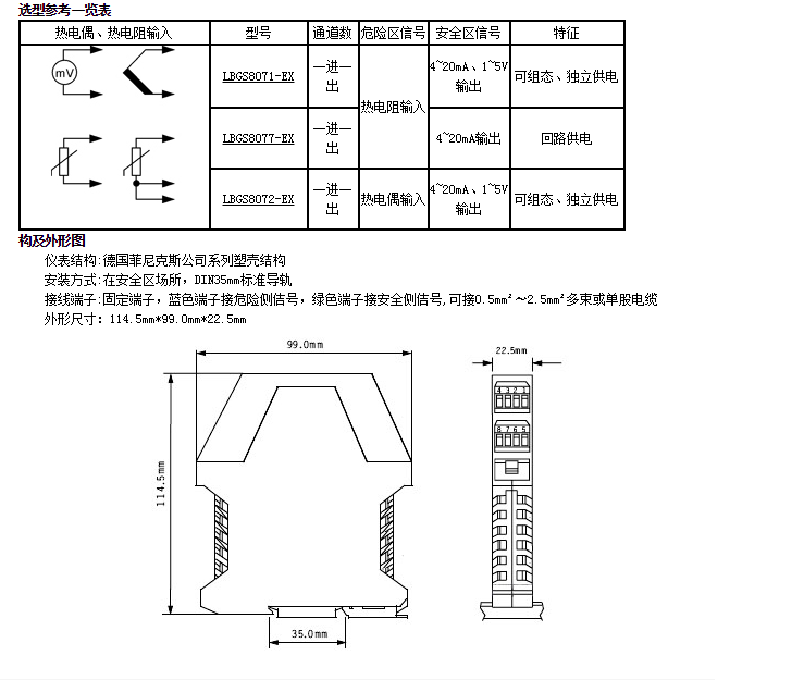 LBGS8071-EX,LBGS8077-EX,LBGS8072-EX,热电偶、热电阻输入浪涌保护隔离栅